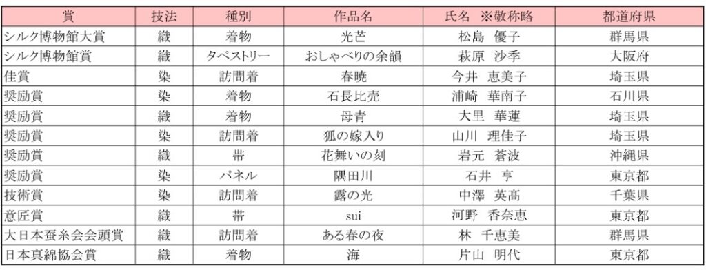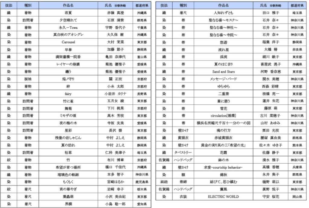 第28回全国染織作品展 受賞作・受賞者 一覧